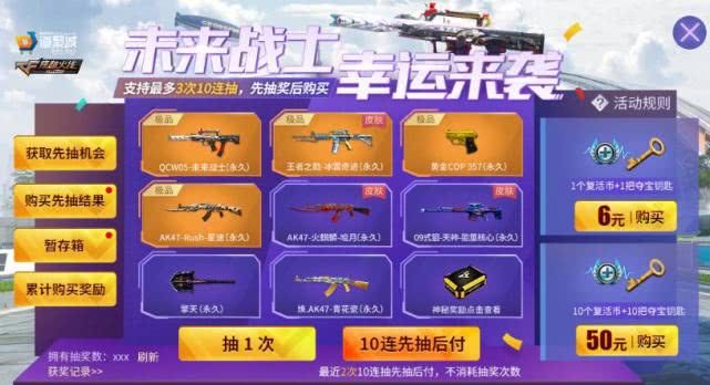 在CF手游“未来战士 幸运来袭”活动中,广大玩家可以通过完成任务解锁“先抽后付”全新玩法。活动期间,玩家在满足“当天登陆道具城APP”、“登陆本活动页面”、“登陆游戏”一定天数之后,就能获得3次“十连先抽后付”资格。