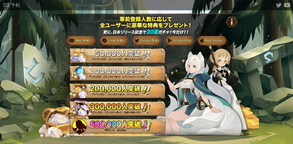 在官网上能够看到日服支持可用的预约登记方式还是比较多的,而同时官方也列出了事前登录活动能解锁的奖励。