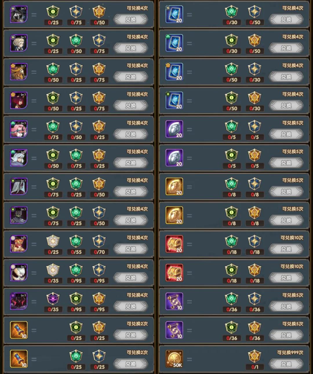 各位这次兑换的各种物品消耗的单次数量较多,各位一定根据自身情况仔细计算好!!!!!