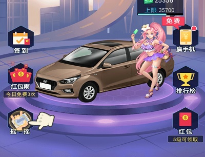每日可通过签到、免费领钱、摇一摇、看视频等方式来获得金币,金币可用于购买车辆,车辆同时也会不断的产生金币,等级越高的车辆获得的金币也就越多。提升车辆等级的过程可以获得红包和额外的奖励。红包雨活动,每十分钟可领取一次红包。