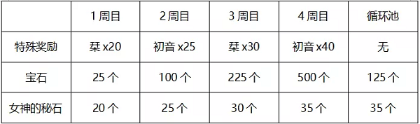 下面可以看出通过参与初音活动可以获得115个角色碎片,角色碎片数量分别为栞x50、初音x65,游戏里面一共有四个周目供玩家挑战,挑战成功够即可获得相应的奖励。