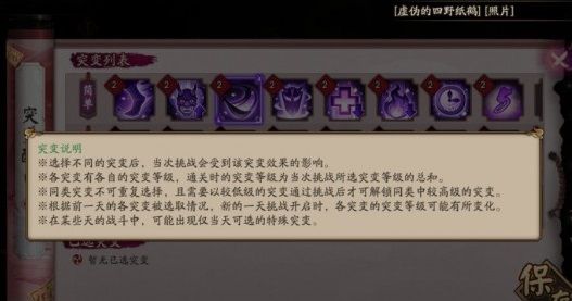 同类突变不可重复选择,且需要以较低级的突变通过挑战后才可解锁同类中较高级的突变。