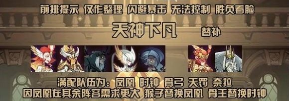 开场的强势控制,后续的小技能控制链,因凤凰在其余阵容需求更大,猴子常替换凤凰未做出时钟的可以用骨王替换。