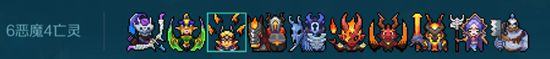 6恶魔4亡灵搭配上2骑士(我方骑士有30%几率获得150护甲和60%法术抗性)2审判者(我方恶魔视为审判者,并保留恶魔光环)的buff,有输出有坦度,可以说得上是相当优秀的阵容了。