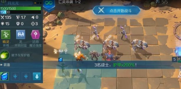 1、上场3名战士,获得战士阵容羁绊,放在战场前方。