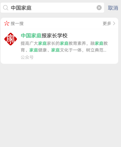 1、点击【微信】,进入公众号【中国家庭报家长学校】。