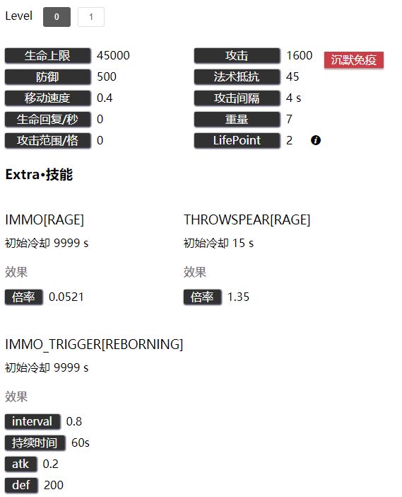 重生期间攻击提升20%,防御增加200,每0.8秒对半径1.75范围内干员造成自身攻击力的5.21%真实伤害
