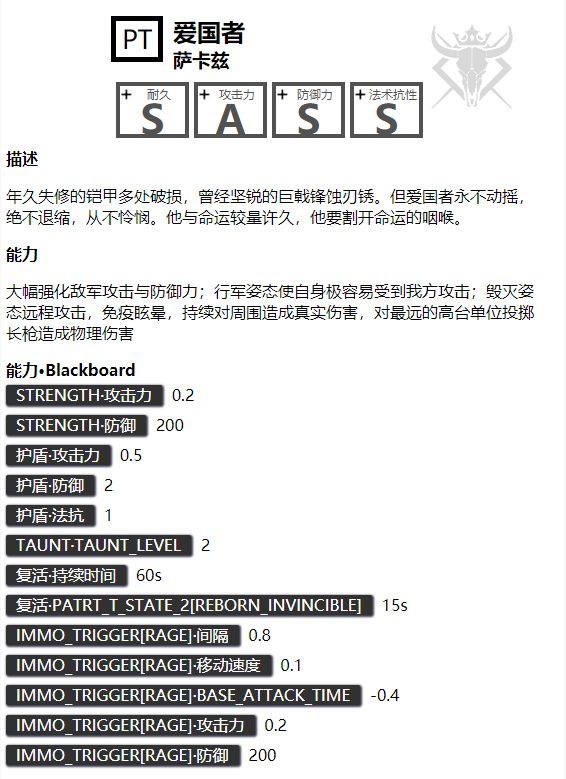 明日方舟爱国者数据介绍:爱国者数据图文分享
