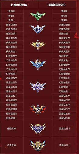 而更高的星耀基本上就会掉落一个大段位到钻石级别,根据小段位的不同继承的钻石段位也有所区别,而车神级别的玩家则会掉落2个大段位。