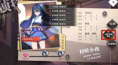 因此大家如果想要尽快完成约会的任务,就要将礼物集中送给一名角色。毕竟4级好感度的提升难度很高,不集中赠送一周都难升1个四级。