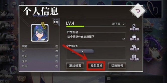 CDK激活码在哪输入 1、进入游戏,点击游戏主界面的个人头像进入【个人信息】页