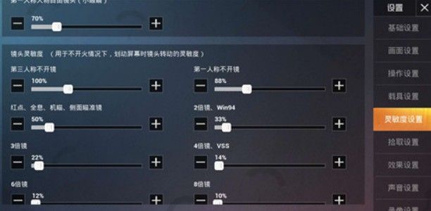 即使现在增加了瞄准镜,在没开镜的时候灵敏度依然共用这个设定,而不开镜的灵敏度一般都设置在100%,这是一个大部分玩家都比较属性的设定。