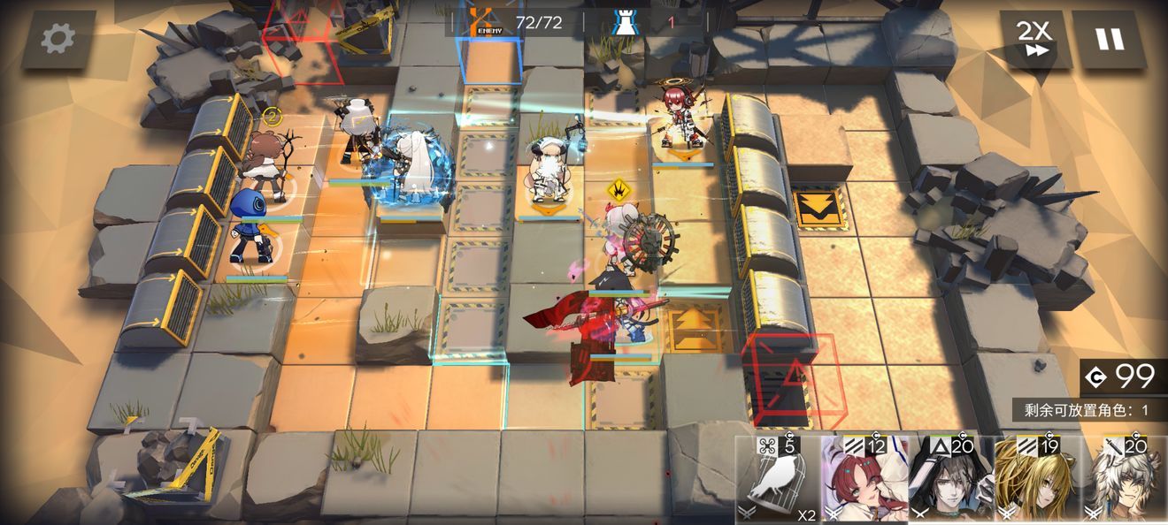 其他四个箱子从左到右摆好以后中路下干员就行了。