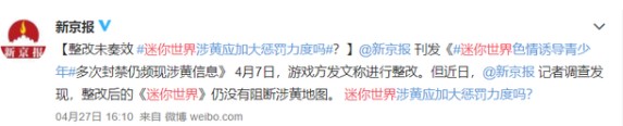 不过据悉在4月7日《迷你世界》已经整改过一次,但是目前依旧存在这样的现象!那么是否应该加大惩罚力度呢!