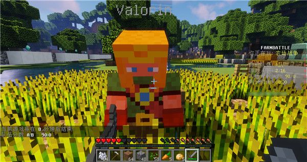 在这个小游戏中,你将会作为一个农夫,在自己的阵地种菜,并将收获获得的果实放到出生地附近的箱子中,来给自己的队伍加分。