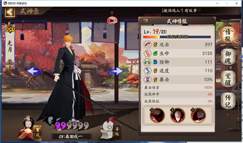 黑崎一护的基础属性在游戏中是比较的高额的,攻击、速度和暴击都是初始S的级别,从面板属性上来看是非常的不错的一个式神,但是技能的话就有一些拉胯了。