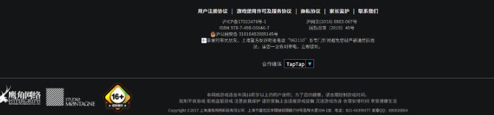 这是明日方舟官网页面最底部,版号是公示的