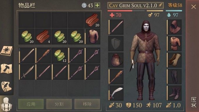 2.最好的装备。家具磨石做好后可以打磨部分左边是黄色条的武器,打磨相当于强化,有可能会失败,所以要用拆分大法,备份武器,最高强化5级。