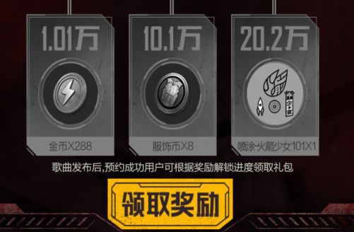 达到预约数量且通过和平精英帐号预约成功的玩家,在【歌曲上线】后即可领取对应奖励;领取奖励帐号需与预约登录帐号保持一致。