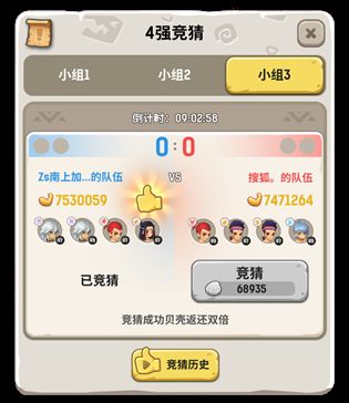 只需要花费一定的贝壳便能下注你看好的队伍,竞猜的队伍获胜,则获得双倍贝壳奖励!当然若不慎看走眼,选择的队伍决斗失败,那下注的贝壳可要打水漂了……