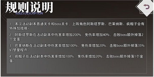 那么,我们就可以规划出本次活动的玩法:1. 优先获得活动加成角色,但是不建议抽活动精选池,因为周五的轮换精选池是神澄up! 我们注意到里程奖励能白嫖一只对BOSS关卡,有奖励加成的兔子,所以先解锁兔子再打BOSS关。