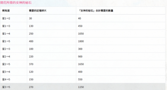 换取一片记忆碎片所需的女神石数量会随着你已换取的次数而变多(具体数值如下图)