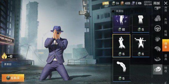 至于选择哪一套搭配,就看大家的个人感觉。除此之外动作表情也要到位,动作表情选择摆裙舞和求求你这两个表情,和“黑哥抬棺”视频里的很像,求求你这个表情15物资币就可以获得了,而摆裙舞没有找到,实在没有的玩家可以用海带舞这个表情代替。这个人物搭配上这套服装,再加上表情,不说能100%还原,但80%还是有的。