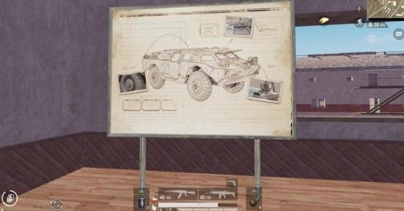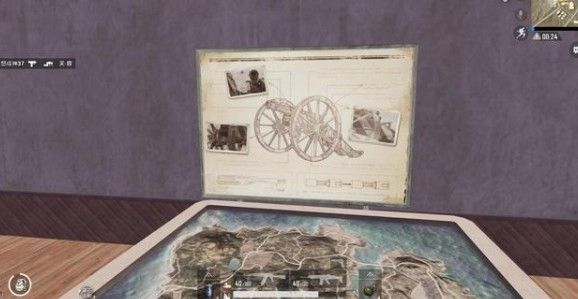 第四个部分坦克,坦克与装甲车一样,分别出现在了窗户的两边。在这个狭小的房间内,分别放置了坦克、迫击炮、装甲车、海岛地图的鸟瞰图4样物品。