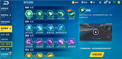 断位双喷的操作技巧就是第一次漂移进入45度角的时候反向点击方向键,然后再点两次漂移,第二次漂移按住等车头位置摆正之后松开方向键并点击小喷,然后再次点击第二个小喷就可以触发。