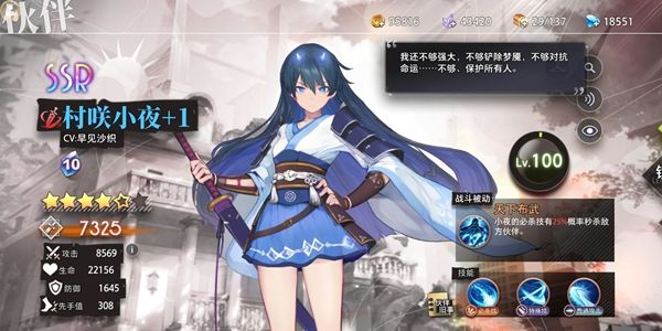 小夜,ssr卡,收集难度0,可以买4天12块钱的礼包升到5星,不过要2000粉尘,不错的攻击百分比外加15%的削血使她4星就能用了,还可以秒盾(越战力也能秒,5星只是加概率),升级,装备优先度和修女并列。