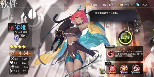 米娅,r卡,收集难度低,12章之前伤害还是很可观的,主要作用是死后buff队长,在某些队长技可以用两次以上的关卡很有用,资源占用小,练一个备用还是可以的。