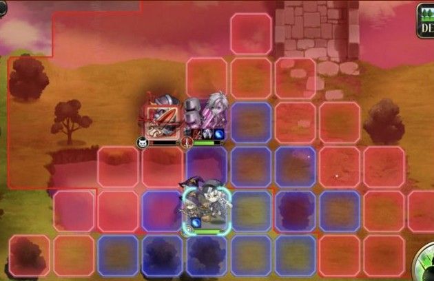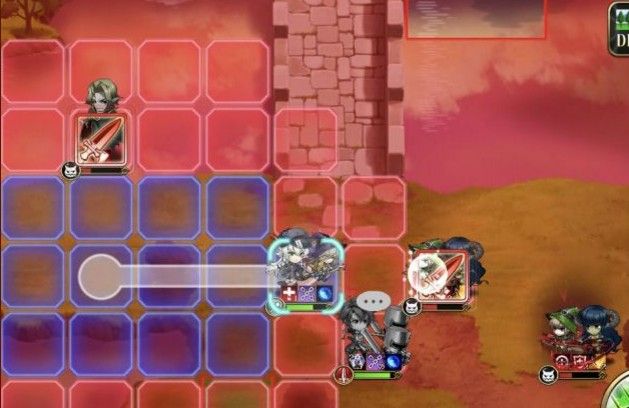 1回合,黎恩走左边鬼人变身等待反击2个近战敌人,黑兔往右下走触发天赋。
