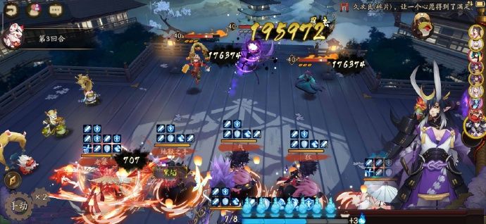 比如图二,观战区有两面佛呱跟荒川呱没有妖刀姬呱,所以只需要普通攻击打妖刀姬就行,伤害会溅射给其他式神,非常简单