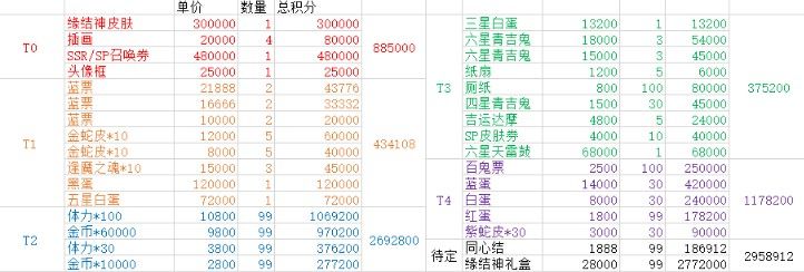 参考上方的表格,可以了解到本次活动的奖励兑换优先级,例如结缘神的皮肤、头像以及一些纪念道具,大家都是可以优先考虑兑换的,收藏的价值很高。其次就是选择SSR召唤券、蓝票、黑蛋白蛋或者是体力金币等等。