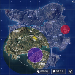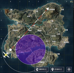 为了让大家理解蓝紫色圈的战术意义,小白裙在这里放出一局游戏的四次缩圈情况: