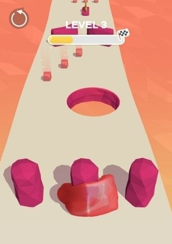 在跑酷的过程中,我们只需要操控鼓动不断地前进,并且在道路过程中躲避很多的陷阱和危险。路途中经常会出现一些黑洞,要躲避这些黑洞,否则果冻就会掉下去,用最短的时间不断冲刺,只要能达到终点就可以通关,时间越短获得的分数也会越高。在前进的过程中,小果粒是可以吞噬的,这样能让你的果冻变得更大。
