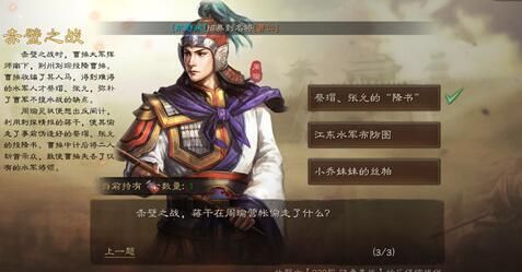 而其他几个问题的难度则不是特别高,玩家只要稍微熟悉一点演义的故事都可以轻松回答,总的来说官渡之战的答题难度并不是特别高,大家按照以上的标准答案回答就可以获得6个锦囊。