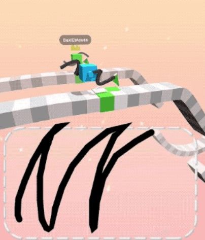 但是开始之前,要先画腿出来,从玩家落笔,到收笔画完后,小方块就自动动起来。