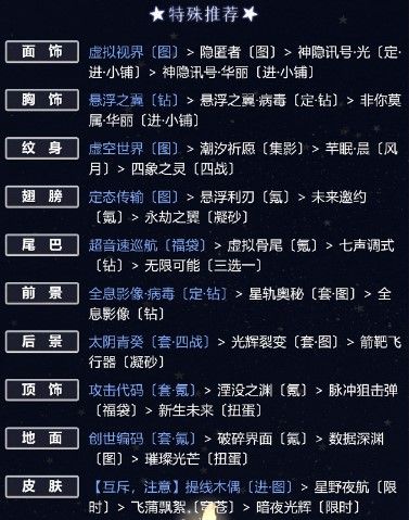 顶饰:梦境候兆 (暂无途径|2334) > 恶魔低语 (暂无途径|2328) > 狐火的守护 (狐嫁盛典|2301)=闪耀惊喜 (恶魔玩笑|2301) > 圣之棺 (图|2293) > 落盘珠 (图/弦外之音|2266)