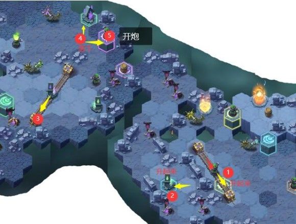关于一号红叉打掉的技巧,可以直接按照图片中的数字操作即可,会有两个传送门可以来回传送,玩法超级简单。