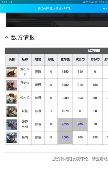 首先了解一下这次挑战的地图以及敌人的情报,通过图片可以详细的了解到敌人的情报内容,包括boss的名称还有级别以及生命值、攻击力、防御力等等,充分的了解敌人才能知道通关的技巧,所以这些敌人的情报大家是需要多了解一下的。
