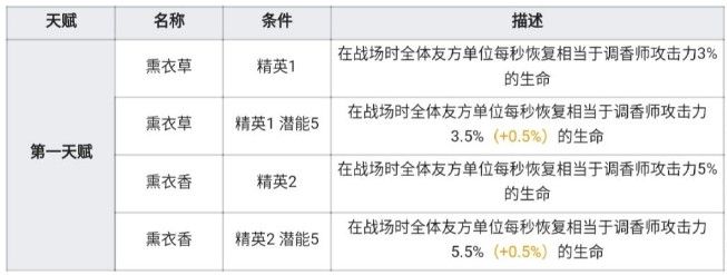 属于比较适合新手的偏肉的高台医疗,虽然在肉度上点了不少技能点,但天赋却一点没落下,计算天赋时调香师的等价普攻为421高于全游最高面板夜莺的420,这意味着不开技能时的调香师也是一个非常优秀的群体医疗。