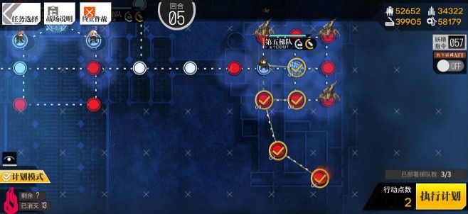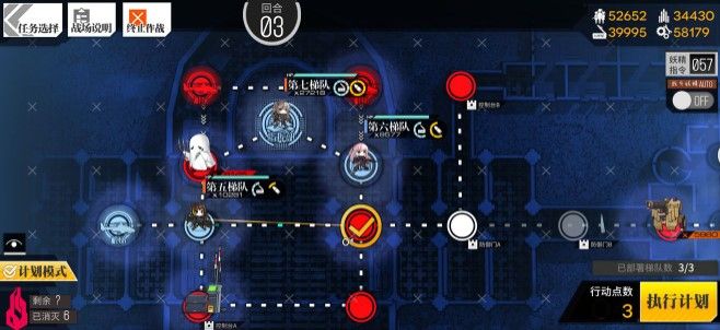 第三回合m4是向右一步,开始部署三号的打扫,三个不同的梯队可以自由换位补给,之后就将三号打手向左一步,最后将m4移动到控制台b的位置。