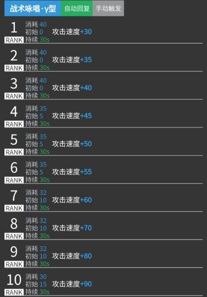 一个普普通通的加攻速技能,但是如果配上天赋之后就会变得十分强力。攻速大幅增加,并且CD很短,配上驴子的天赋,真空期极短,适合在例如6-5的这种持续性的高压,但开了技能会有些浪费的关卡,是个很不错的技能。