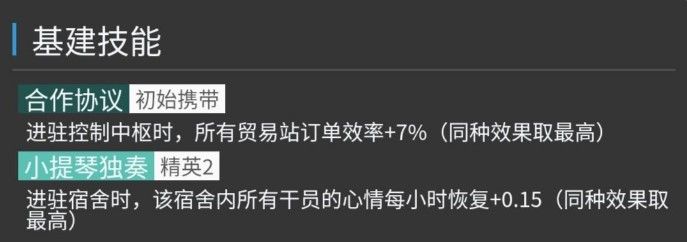 看这完美的基建技能,简直是完美的工具人呐,工作完之后休息还能给自己格外加心情,可谓是名副其实的基建工具人。