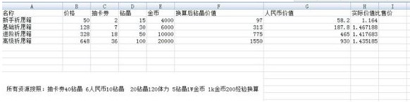 首先说明衡量各种资源的标准:抽卡券40钻晶 120体力20钻晶 1w金币5钻晶 10钻晶6RMB