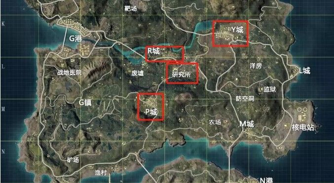 然后经典模式-海岛地图中的P城、研究所、R城和Y城这四个地方各有一个圆盘,还帮大家在地图上标记出来啦,特种兵们记得做好笔记。