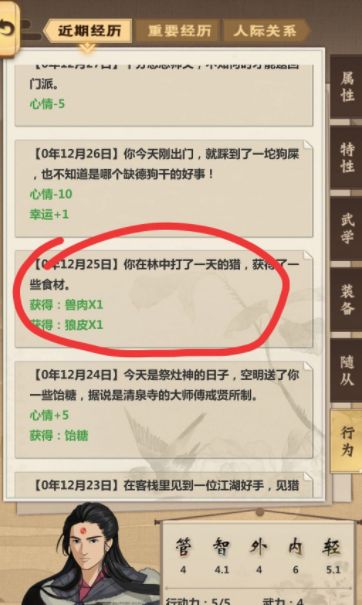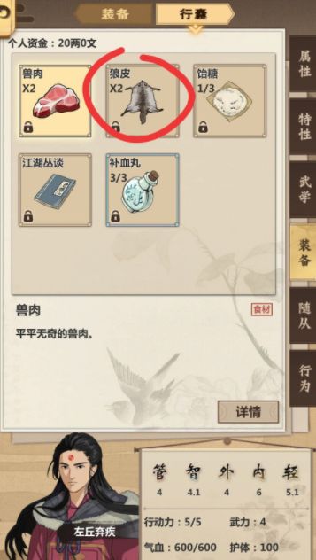 这就成功达到了大家卖书的目的,而皮毛的话,只需要打开行为就可以查看,会在背包里面出现狼皮,狼皮的话价值是5两。