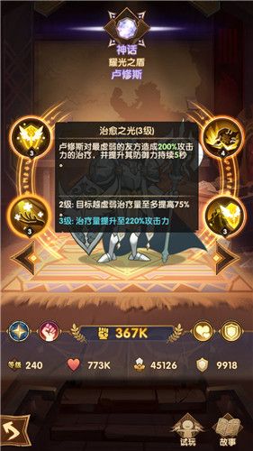 一定要升级一下卢修斯的圣光之盾技能和治愈之光技能,这两个技能的等级在达到这个3级之后会有一个质的改变,一定要主升哦。