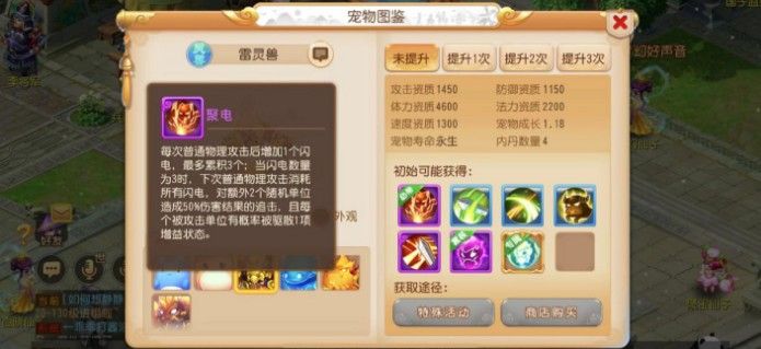 雷灵兽必带技能聚电:每次普通物理攻击后增加1个闪电,最多累积3个;当闪电数量为3时,下次普通物理攻击消耗所有闪电,对额外2个随机单位造成50%伤害结果的追击,且每个被攻击单位有概率被驱散1项增益状态。